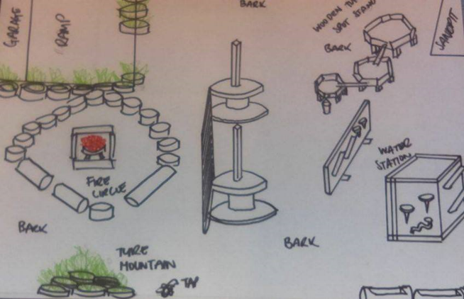 When we recently began the redeveloping process of our outdoor play space, Children were engaged in the development of the space from the start, staff and families also included in the entire process, as we are inviting all to use this space. Creating a sense of place, all should be invited to engage in the development and continued up keep of this motivational play scape, coming away from a Disneyfication of the outdoor space (meaning, a play-scape that is constructed almost over night with little to no input from the Children, or community as a whole). With the sketches complete, they remain merely as a rough guide, as we discussed that we wished to see the play scape take shape as it was constructed, and hoped that it would morph into something else over time due to its use and the weathering effect.